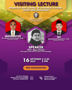 Department of Mathematics Faculty of Sciences and Mathematics Diponegoro University presents: VISITING LECTURE Estimation and Control of Dynamical Systems: Theory and Application Will be held
